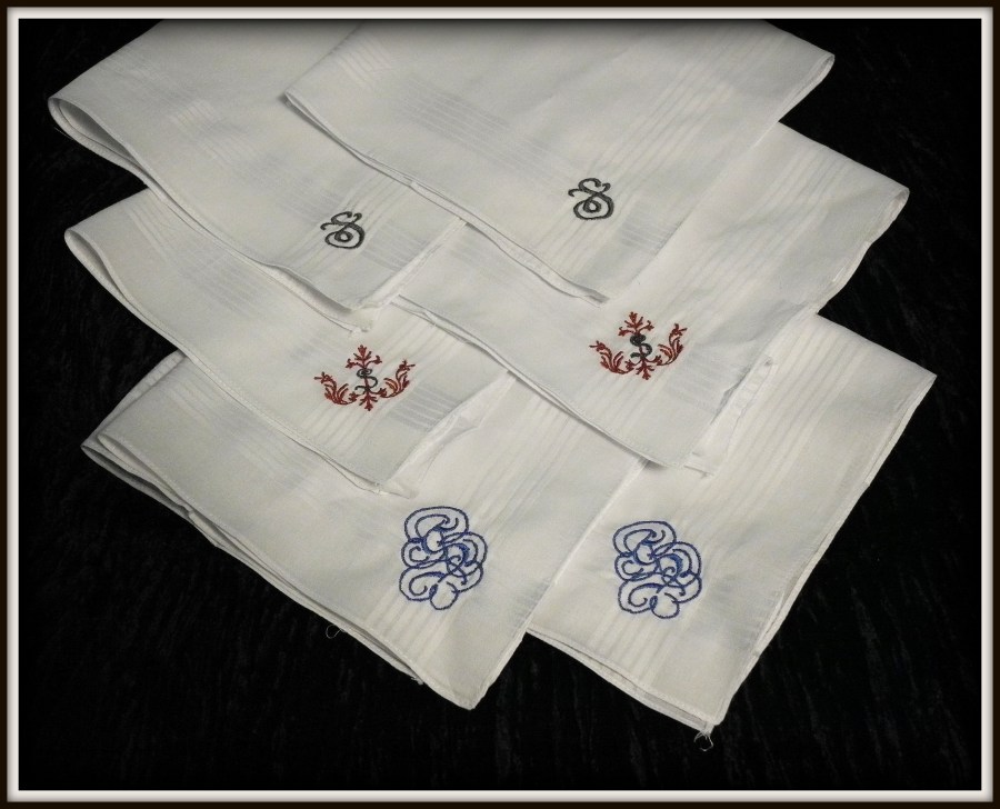 Monogramed Hankies Uploaded December 23, 2012 by kurolace I don’t particularly like 3 letter monograms, so I just used my dad’s first initial.